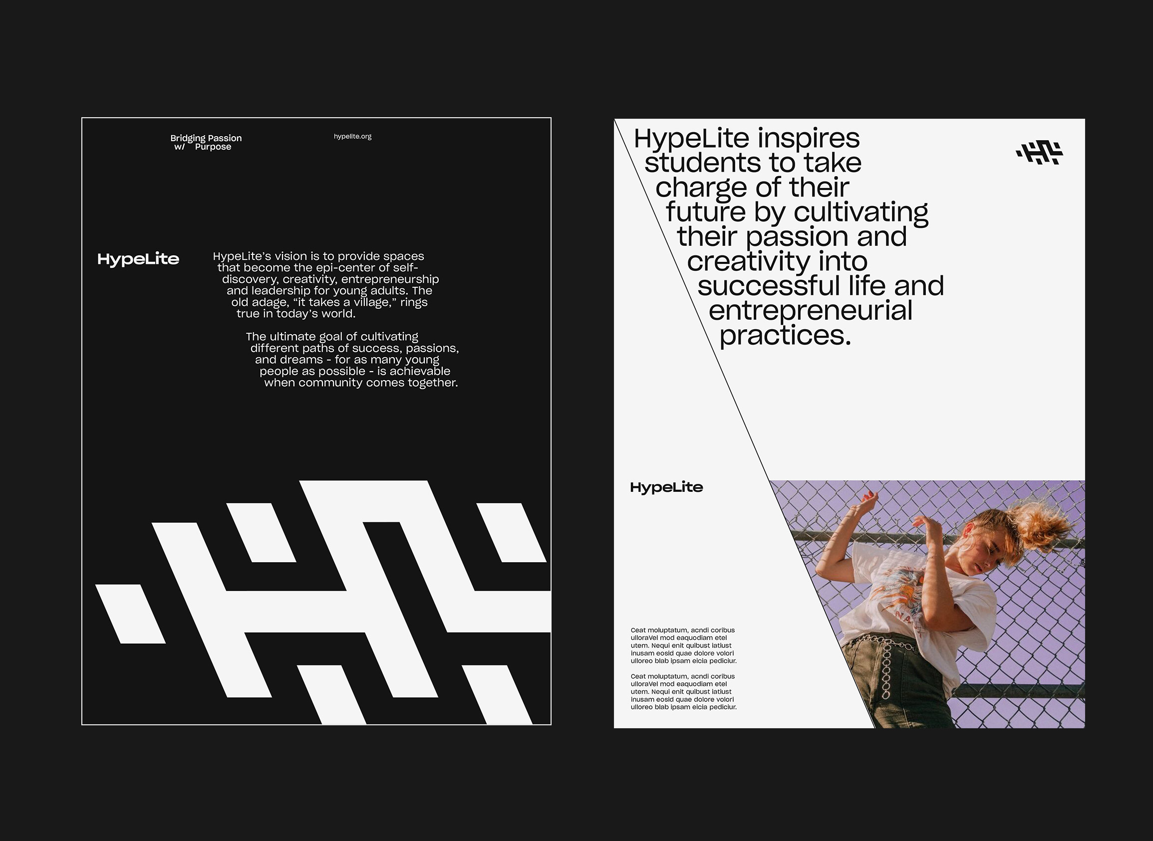 This is a rebrand for a hype brand that offers much more than just hype. Wrapping itself in the look and feel of “hype” aesthetics to get students engaged and inspired, the design system is centered around the concept of building your own path and the challenges of a school system that often fails to prepare students for their future.
